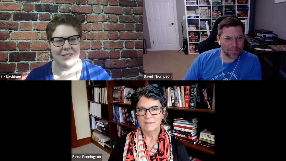 | Night Witches: Beyond Solitaire podcast, Episode 81: Reina Pennington, Liz Davidson, and David Thompson on (2022) This is my favorite interview. The designers of the forthcoming Night Witches board game talked with me about my work, the Night Witches, and how to translate history to a board game. |